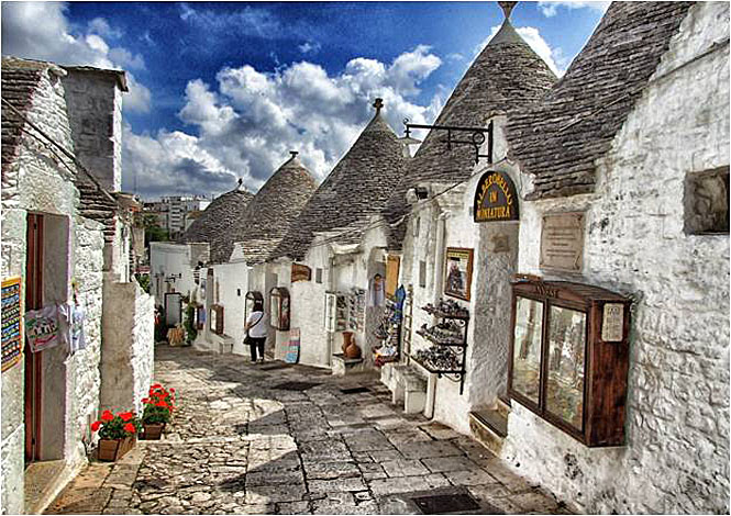 Puglia, the southern region forming the heel of Italy’s “boot,” is known for its whitewashed hill towns, centuries-old farmland and hundreds of kilometers of Mediterranean coastline. Bari, the regional capital, is a vibrant port and university town, while Lecce is known as “Florence of the South” for its baroque architecture. Alberobello and the Itria Valley are home to “trulli,” stone huts with distinctive conical roofs.
